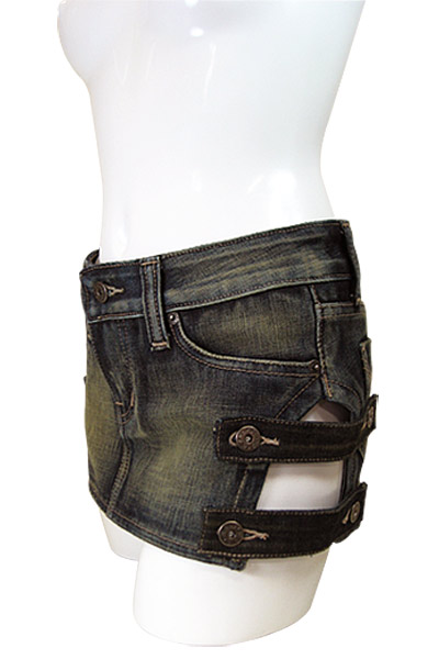 両サイドの太股部分をカット!チラ見えセクシーなデニムのミニスカート(M)。
