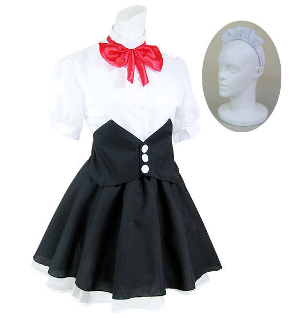 シャツの袖はパフスリーブになっていて、女の子らしさを惹き立てます!フリルカチューシャもセットになった、キュートなコスプレ衣装です。