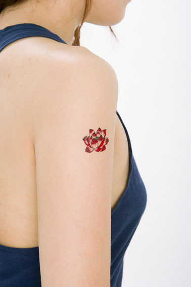 お洒落のワンポイントに!ミニサイズの刺青シール「蓮の花」。