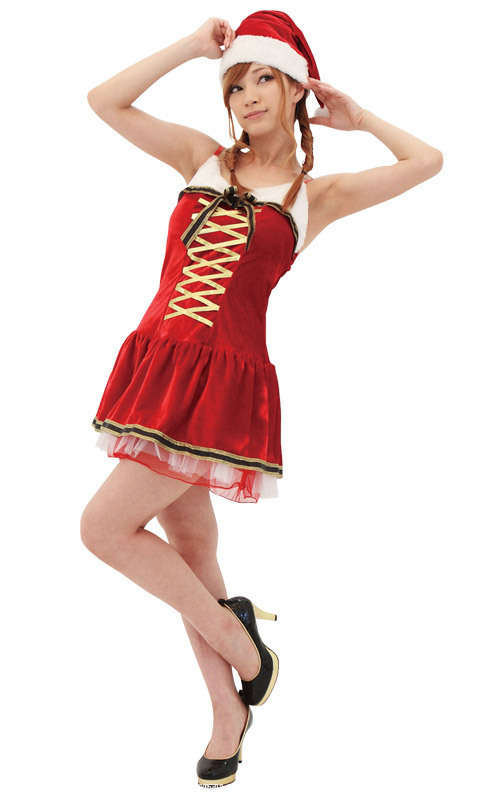 レースアップ風のゴールドリボンがポイントになったサンタドレス。