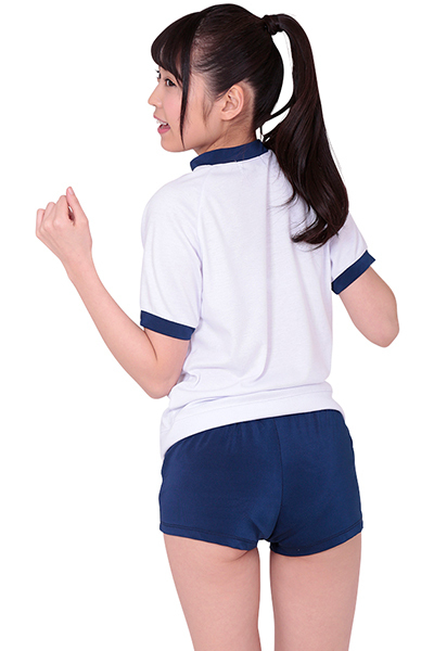 むっちりブルマの代わりとして普及してきた、ライン入りの紺色短パンタイプ。