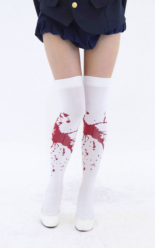ほとばしる鮮血に思わずドキッ!飛び散るリアルな血痕がプリントされた、ホラーテイストのニーハイソックス。