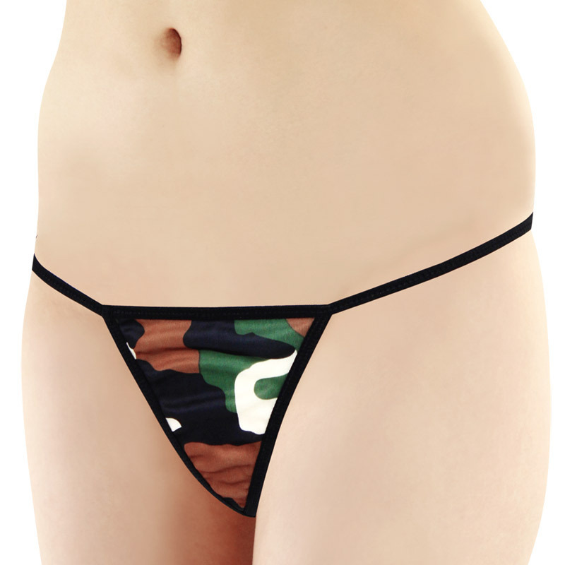 ●迷彩柄×ブラックのアーミーカラー●ミニマムな三角形フロント●繊細ストリングなサイドデザイン●セクシー度高めな大胆Tバック。