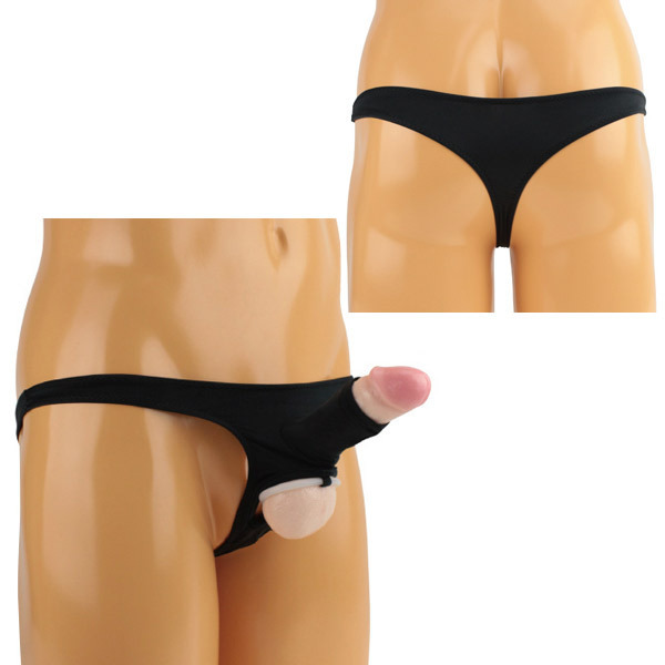 すっぽり包み込む立体デザイン+固定リング付きの男性用Tバックショーツ。
