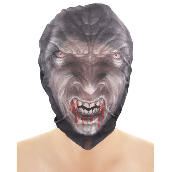 ●口から血を流す人狼をプリント●内側から外が見えるフルマスクタイプ●男女兼用フリーサイズ。