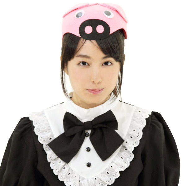 黒くて大きい鼻が特徴的!頭にポンとかぶるだけ、可愛いピンクのブタさん帽子。