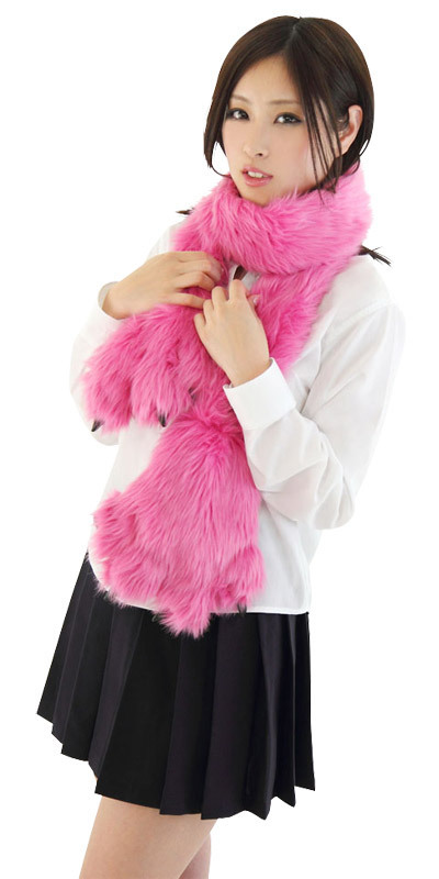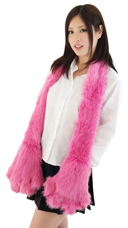 ●ラブリーなピンクカラー●マフラー&手袋一体型タイプ●キュートな肉球&鋭い爪付き●肌触りのいいファー素材。