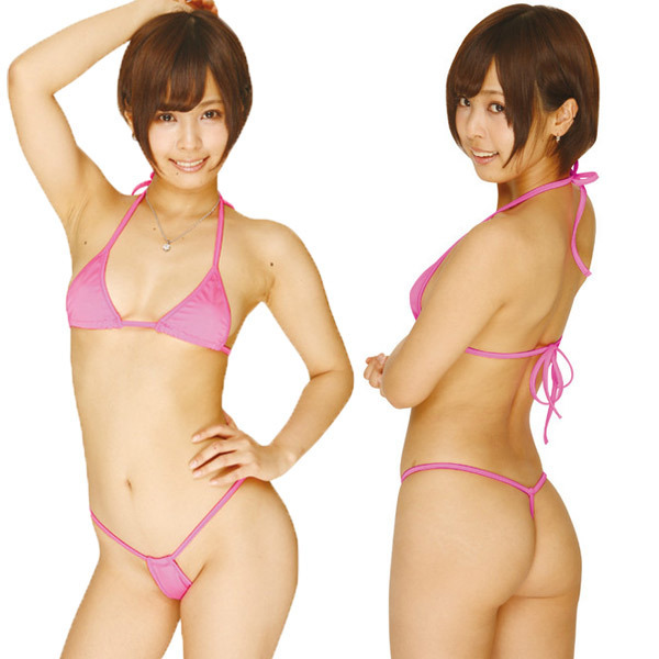 ●女子力高めな鮮やかローズピンク●ミニマムフロントの三角ブラレット●ホルター&アンダーは紐で結ぶ仕様●ショーツのクロッチは更にギリギリ●繊細なGストリングデザイン。