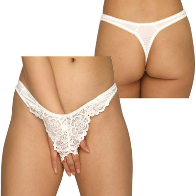 トリコット&レース生地オープンクロッチTバック ホワイト