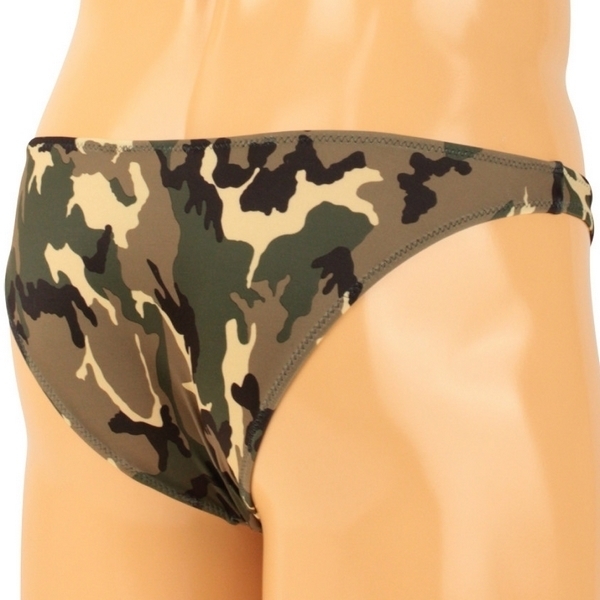 カジュアルな迷彩柄がボディを彩るメンズランジェリー!フロントはゆったり大きめに、バックはスッキリとしたハーフバックでセクシーな仕上がりです。