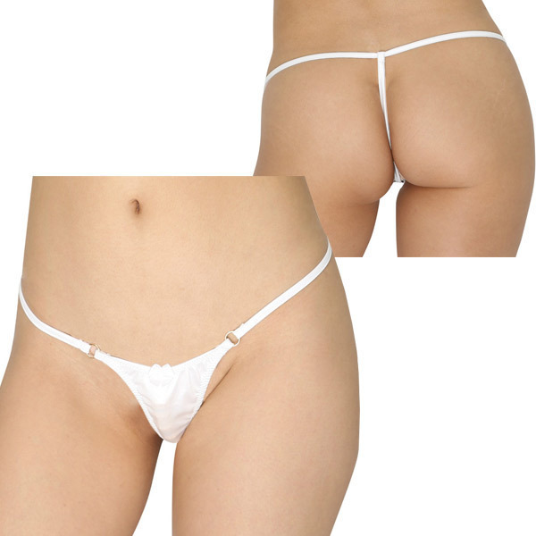 内側に秘密の6連ビーズ付き♪ミニマムな極小フロントがセクシーなホワイトカラーのTバックショーツ。