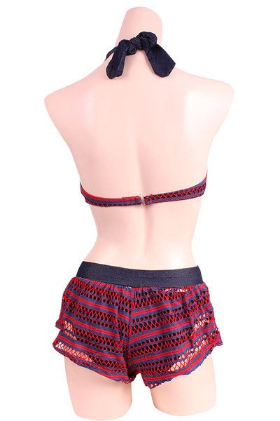 デニムコラボメッシュレースビキニ ショートパンツ3点セット レッド