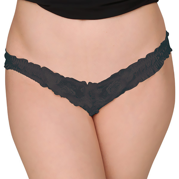 フェリカ&レース生地股割れハーフバック ブラック