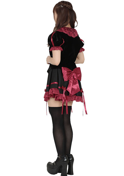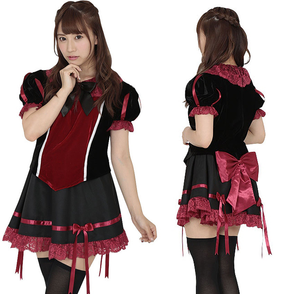 ハロウィンコスプレを通販で買うならコチラの商品はいかがでしょうか?ゴシックなプリンセス風コスチュームは、黒と真紅のカラーを取り入れダークな雰囲気を醸し出すことで、闇堕ちした血みどろなバックボーンを持つ姫をイメージ!赤の繊細なレースや各所に配置された赤や黒のリボンが、衣装のデザインを可愛らしく上品にまとめています。