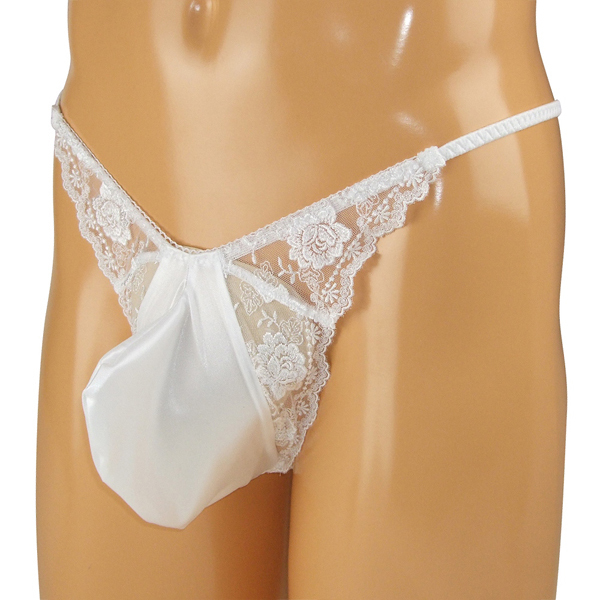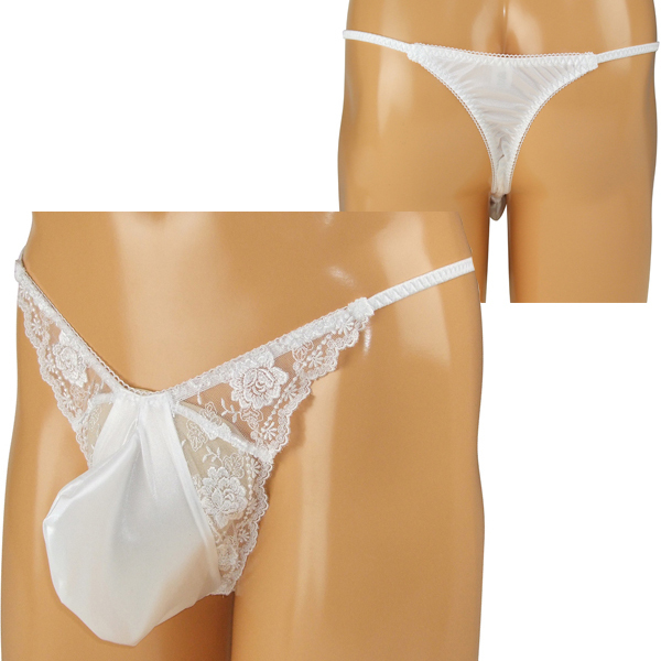 女装男子さん必見!花柄の刺繍レースで可愛く仕上げたメンズ用Tバック(白)。