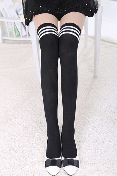 制服コスプレに、いつもの私服に!可愛さを際立たせる3本白ライン入り黒ニーハイ。