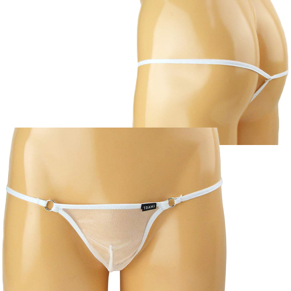 スケスケ感が大胆過激な日本製のメンズ用セクシーTバック(白)。