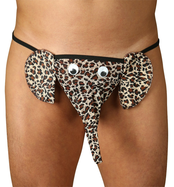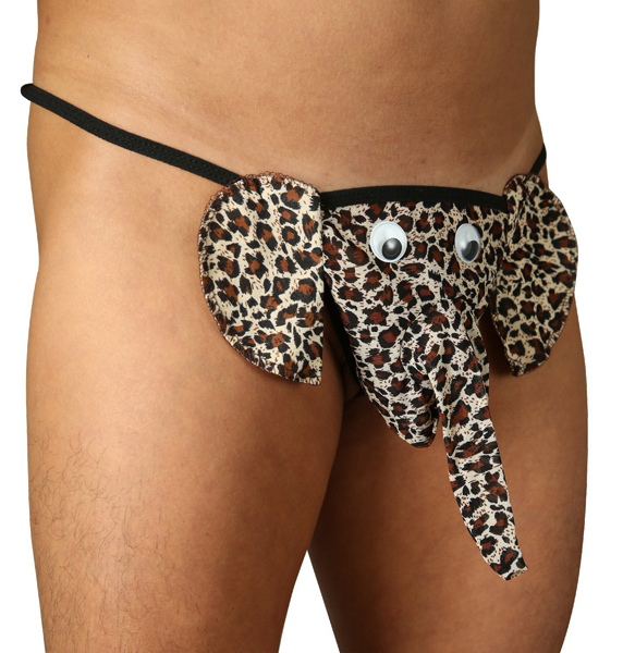 ハロウィンにも最適!豹柄のゾウが逞しさを強調するおもしろ系メンズ用Tバック。男性の象徴に象の顔!勝負の夜はちょっぴりユニークにアピールしてみて♪