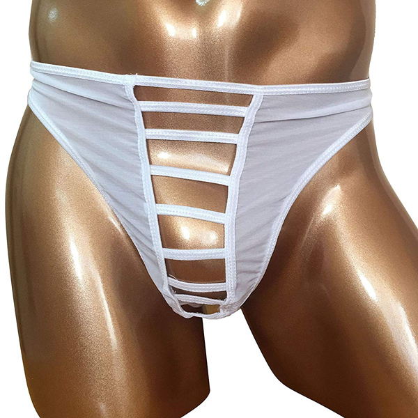 フロント部分だけ大胆にオープン♪開放感が味わえるメンズ用Tバック(白)。