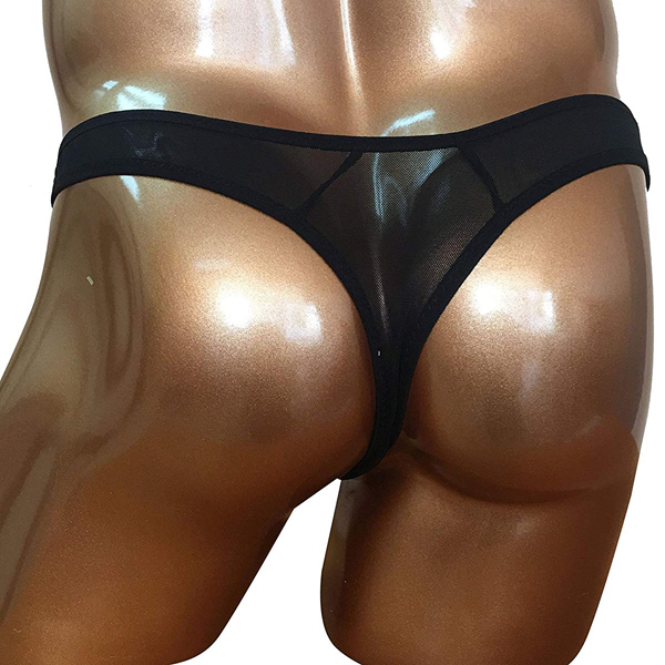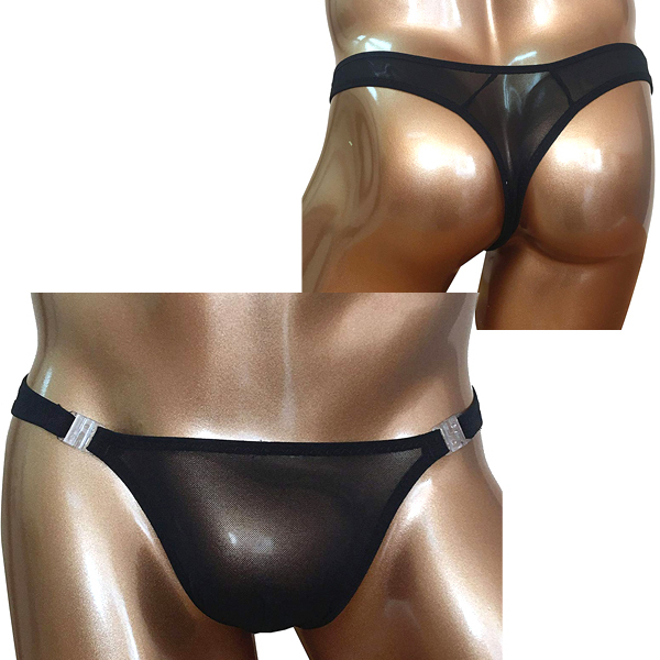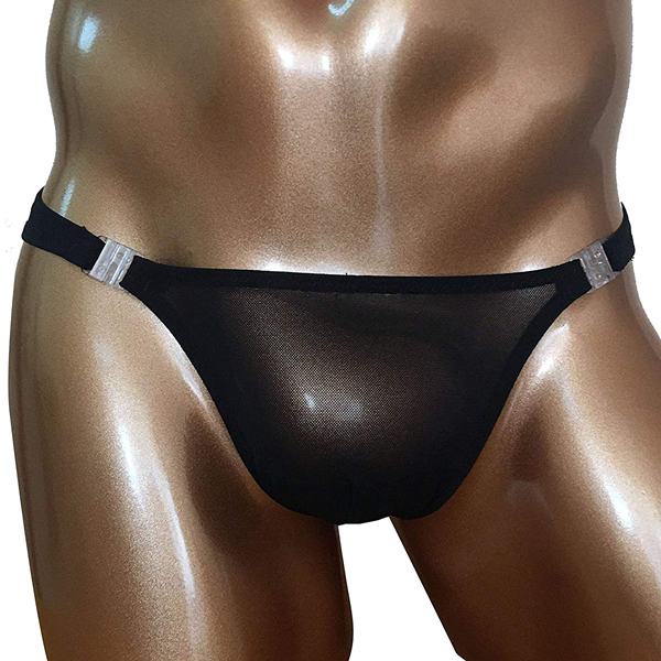 極薄の透け素材を使用したセクシーなメンズ用ビキニパンツ(黒)。
