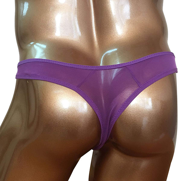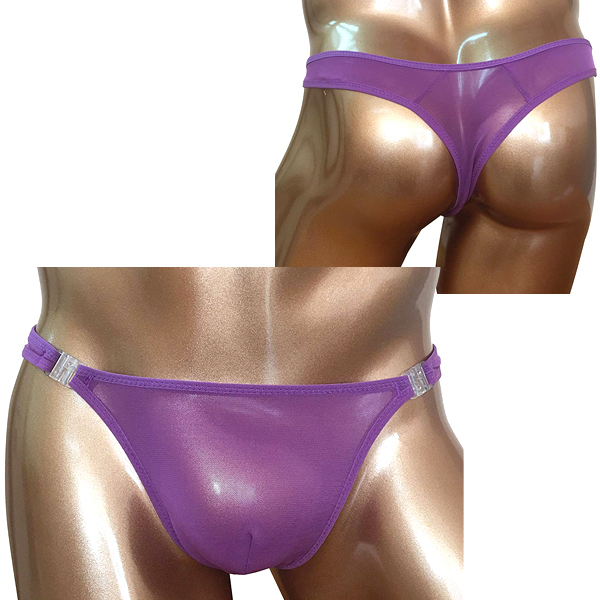 柔らかく伸縮性の高い極薄のレース生地を使用したセクシーメンズ用ビキニパンツ(紫)。