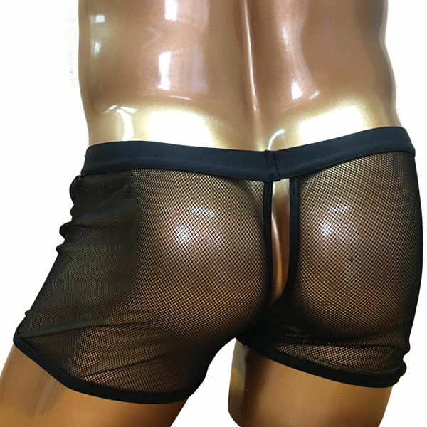 初めてのセクシーランジェリーに最適!トランクスタイプのメンズ用Oバック(黒)。