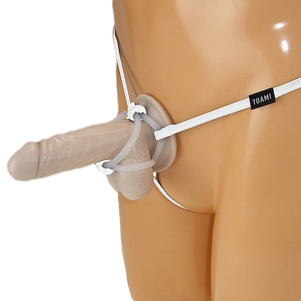 3点締めでしっかり締め付け!悩める男性をサポートするシリコンリング付Gスト(黒)。