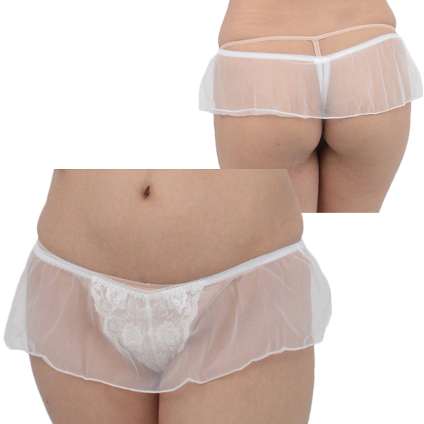 動くたびヒラリと揺れる♪可憐なレース刺繍のTバックとシースルースカートが一体型になった日本製セクシーショーツ(白)。