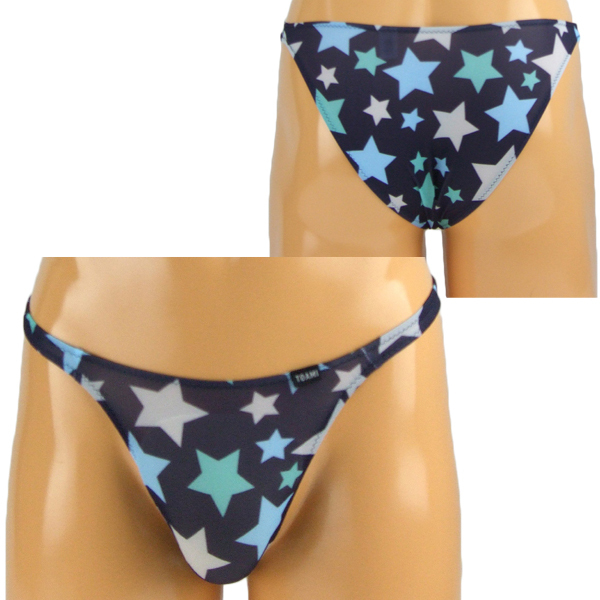 大きめの星柄と鋭いハイレグカットで注目度アップ!下半身にフィットする日本製のメンズ用ハーフバック。