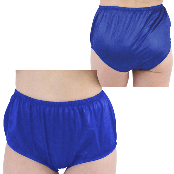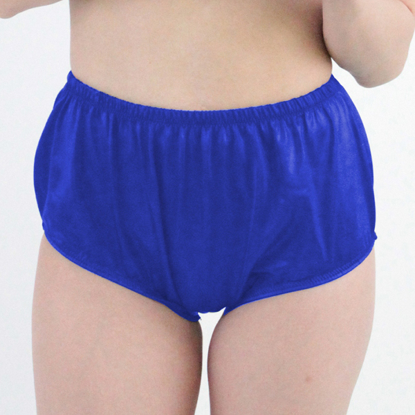 男女兼用!鮮やかなブルーの光沢が美しいストレッチ生地の日本製ブルマ(青)。