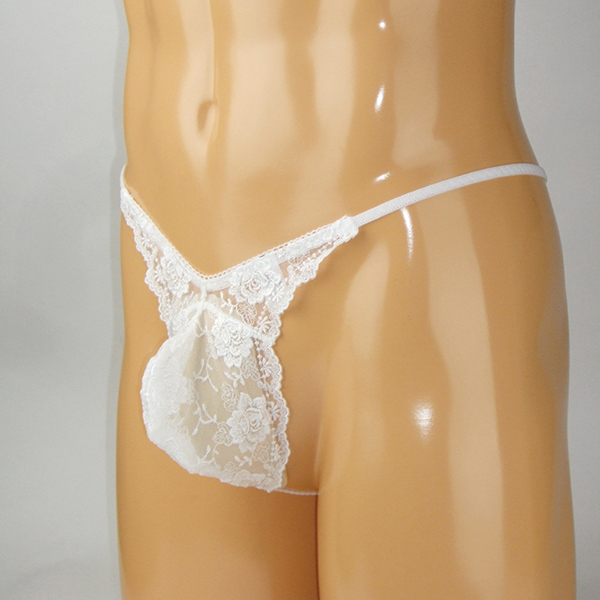 メンズ スケスケシースルーレース付き脇細Gスト ホワイト L