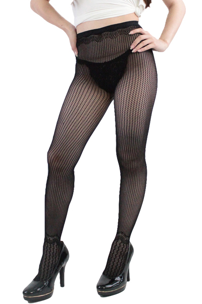 穿くだけでこなれ感!小悪魔的魅力が引き立つ日本製の柄ストッキング(黒)。ウエスト周りと足首から爪先にかけて変化したデザインがポイント!さり気無くお洒落をアピールする黒ストッキング。