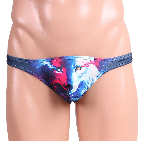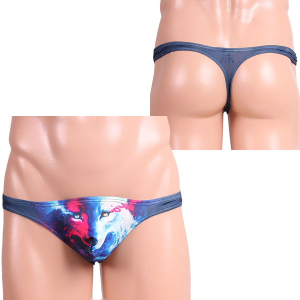 フロントに狼のイラストがプリントされたお洒落なメンズ用Tバック。