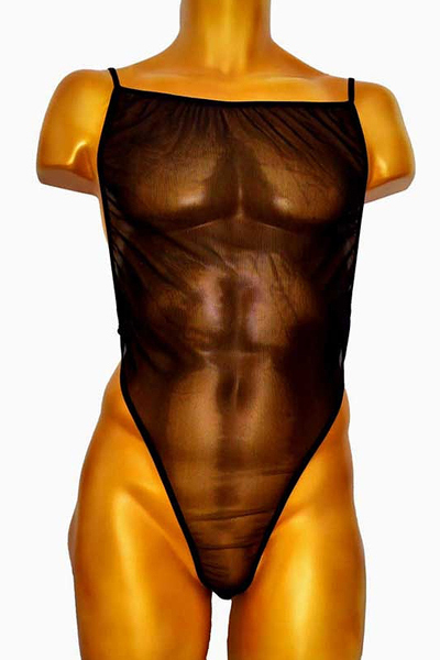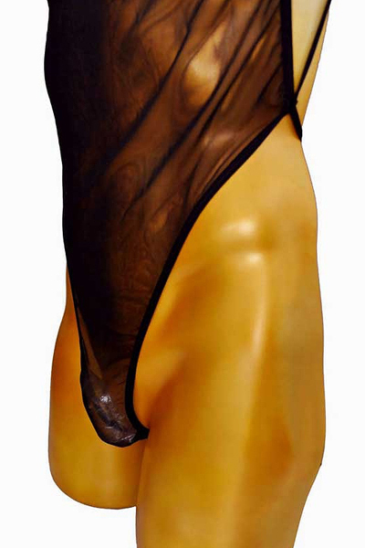 筋肉美を際立たせるシアー素材を使用した黒の男性用ボディストッキング。昔ばなしの金太郎の衣装を令和スタイルにデザイン!背面Tバック仕様、フリーサイズ