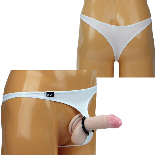 メンズ 2wayストレッチ生地大リング付きTバック ホワイト