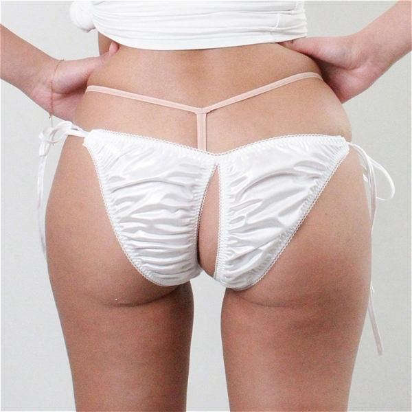 光沢が有り肌触りの良い生地にレース付き脇ヒモ股ワレFB Lサイズ ホワイト
