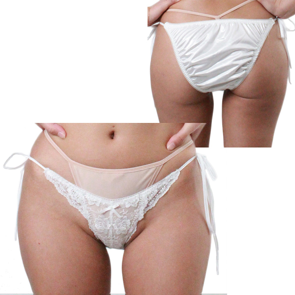 2段にあしらったレースで愛らしく見せつつ、両サイドの紐結びで甘く誘惑するレディース用の紐ショーツです♪◎ホワイト、Lサイズ