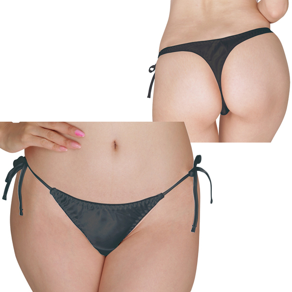 光沢サテン脇紐Tバック 2Lサイズ ブラック