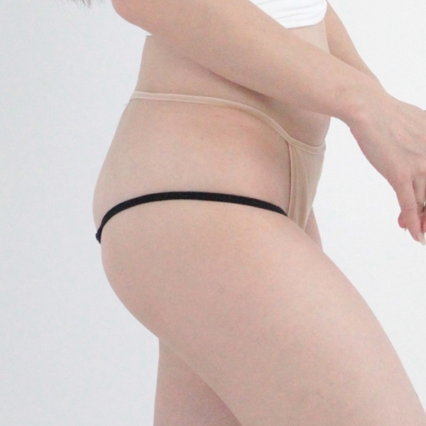 しっとりとしたエナメル生地の脇細極小ハーフバック ブラック