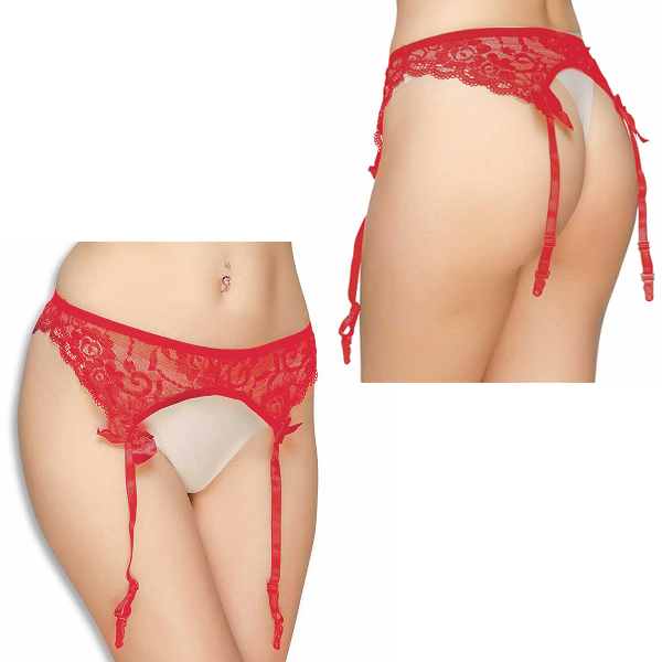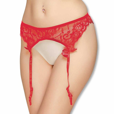 定番人気のフラワーレースガーターベルト (レッド)