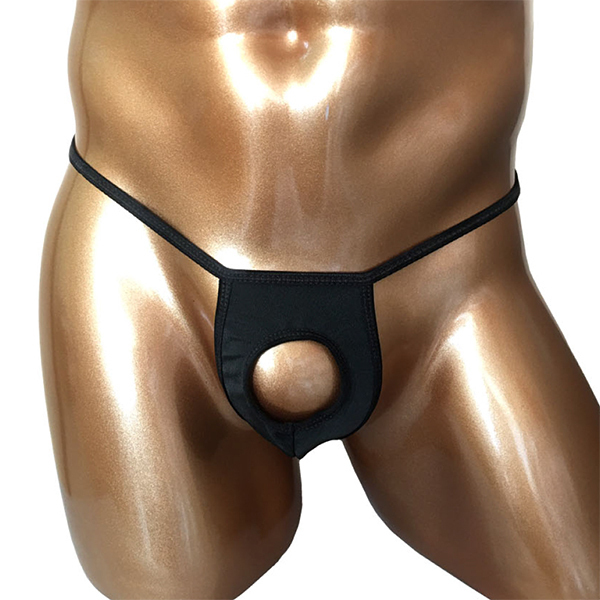 暑い日も蒸れずに快適!男の象徴を一段と際立たせるバッドダディの竿出しホールTバック(ブラック)です♪逞しい貴男を強調したいときにぴったりな横も後ろもヒモだけ仕様!男性のポールだけをコンニチワさせて履くので、露出度高めでインパクトも抜群です。