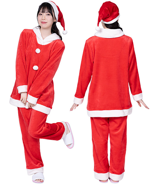 軽いのに密度の詰まったしっとりとしたふわふわ生地で、やさしく身体を包んでくれるサンタパジャマ。