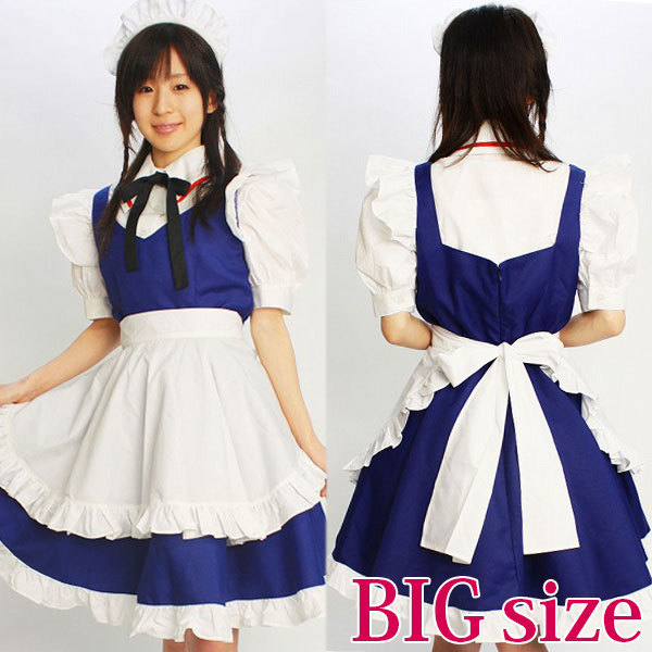 BIGサイズ:B〜101cm・W〜90cm・ブラウス着丈62cm(肩幅45〜50cm・袖丈32cm)・ワンピース着丈83cm・エプロン46cm・リボンタイ33cm セット内容:ブラウス・ワンピース・エプロン・リボンタイ・カチューシャ