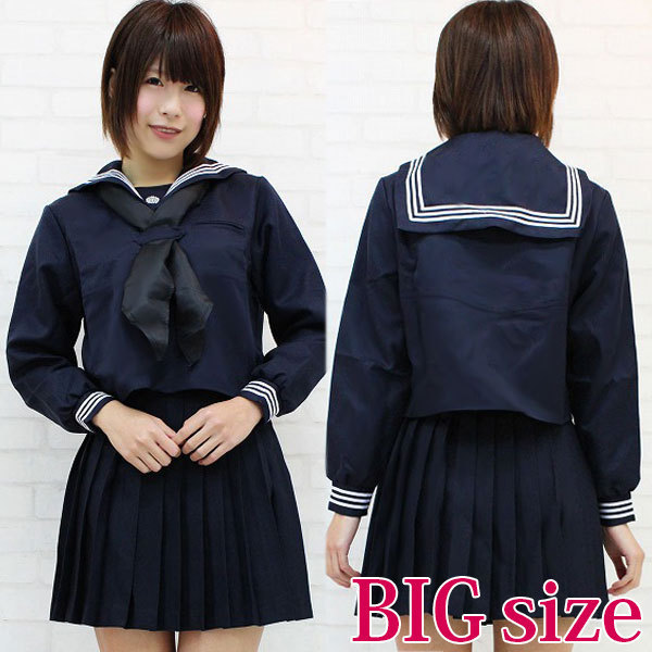 シックな黒スカーフが、落ち着いた雰囲気の長袖セーラー服。