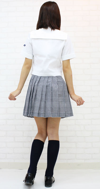 BIGサイズ:B88〜100cm・W76〜85cm 丈:上着54cm(袖丈26cm、肩幅39cm)・スカート45cm セット内容:上着(ピケ生地使用、前ボタン留め、金ボタン、左袖に校章付き)・スカート(横ファスナー、アジャスター有り、黒ギンガムチェック生地)