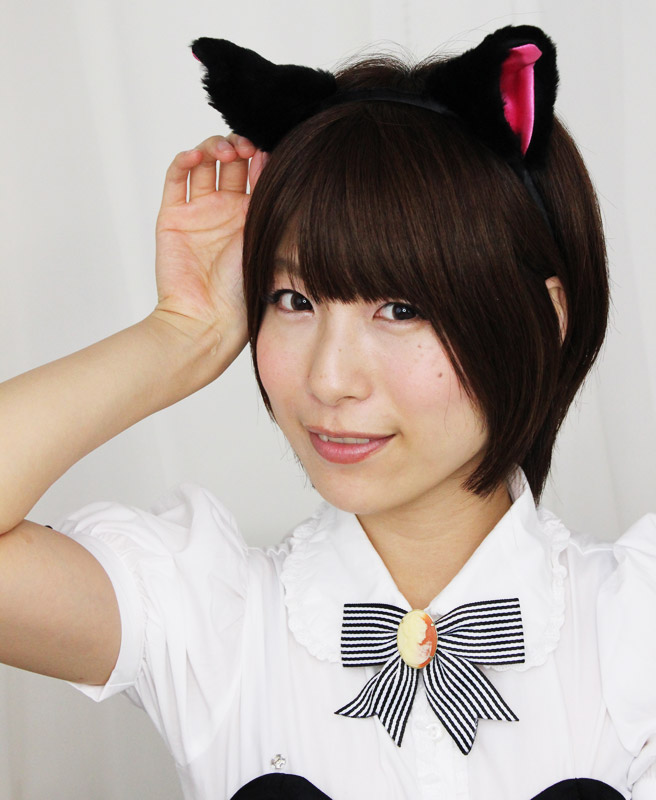 可愛らしいモフモフにゃんこに変身!黒×ピンクのフワフワ猫耳カチューシャ単品。