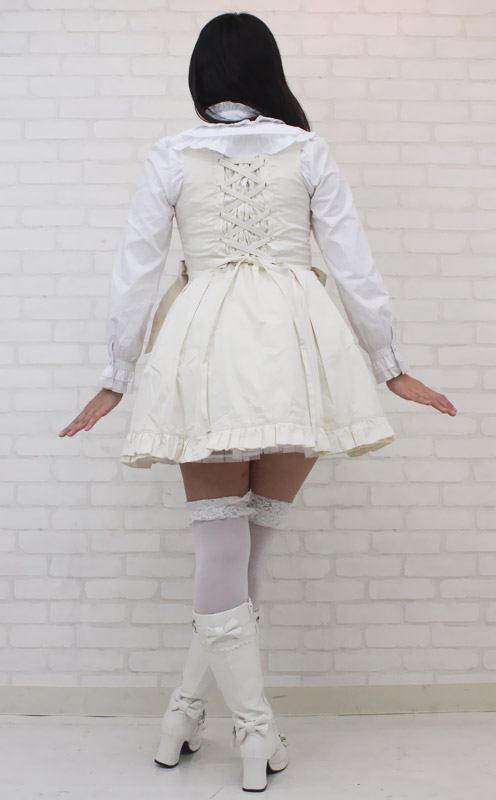 ふんわりフリルが可愛いロリータ服!クラシカルなオフホワイトのジャンパースカート&長袖ブラウスセット(BIG)。