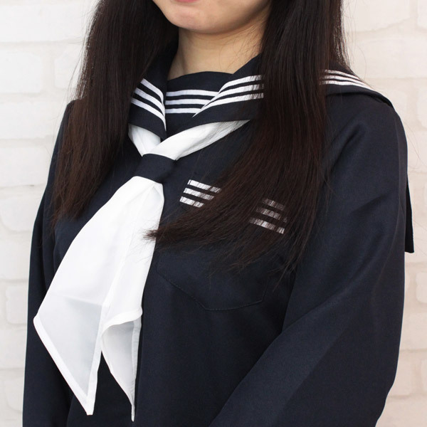 お手持ちのセーラー服の印象を簡単に変えることができる、白いスカーフです!ツヤのある布地で作られたセーラー服専用スカーフは、コーディネイトの友!コスチュームのサブアイテムとして、また汚れてしまった場合の換え用にどうぞ!