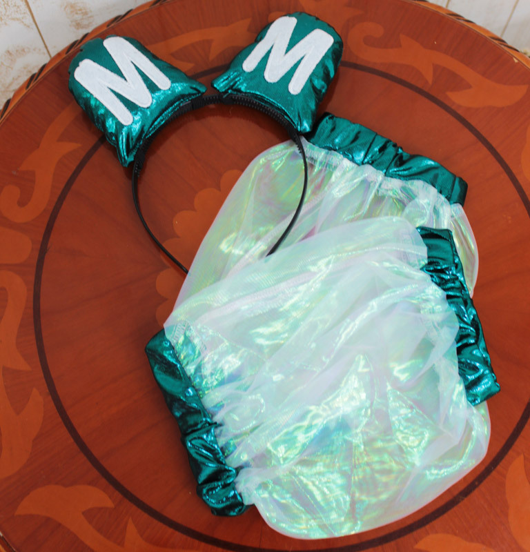 光沢のあるインナーに、ミニ丈の襟付きベストがマッチ!アームカバー、カチューシャにパニエまで付属した、アイドル衣装のセットです。
