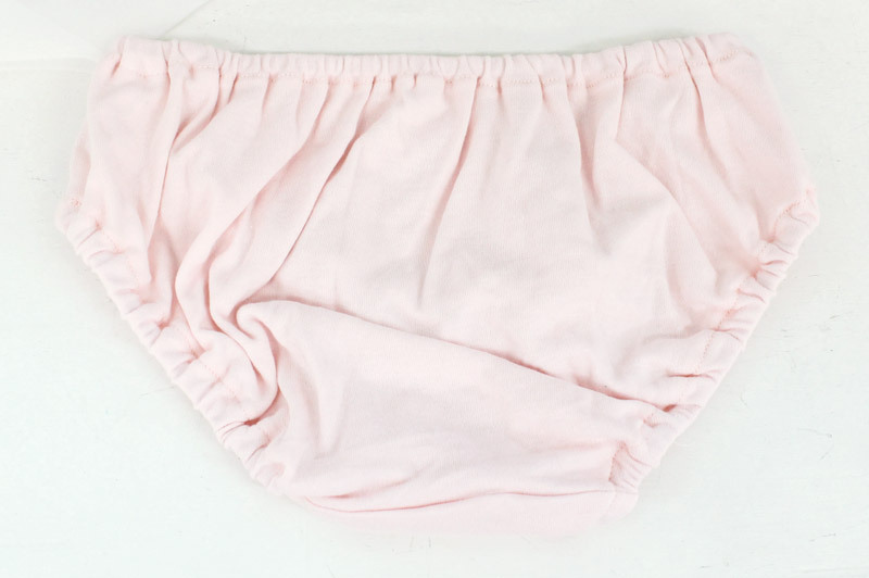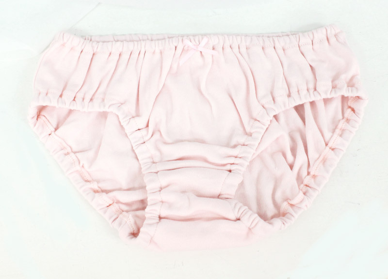 淡いパステルピンク地に、同じくピンクの小さなリボンをフロントへトッピング!同色のマチ当て付きで安心の癒されショーツです。